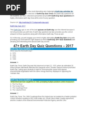 Earth Day Quiz Questions And Answers Free Online Quiz Download Pdf
