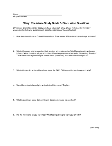 Glory [Full Movie]∺: Glory Movie Worksheet