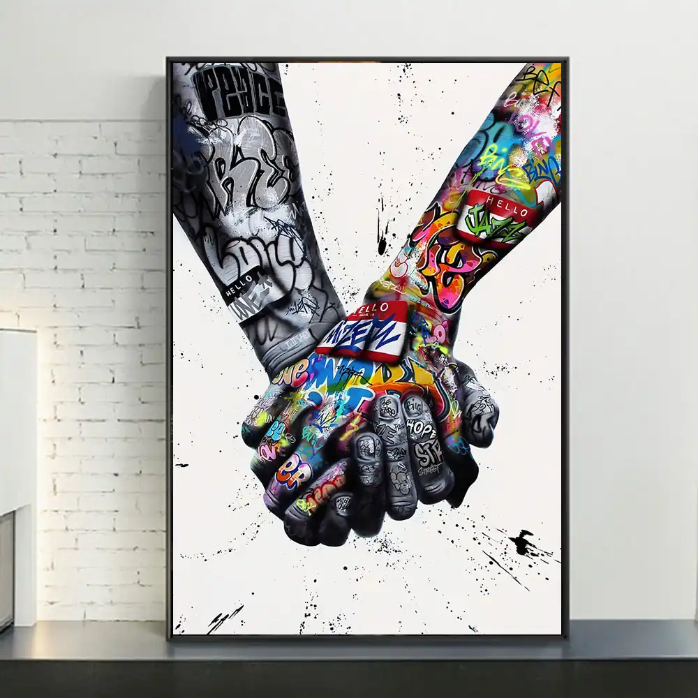 Lovers Holding Hands Graffiti Art Canvas Posters And Prints Abstract Street Art Paintings On the Wall Art Pictures Home Decor|Painting & Calligraphy| - AliExpress