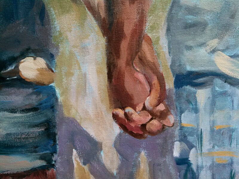 Holding Hands, romantic art, romance, couple in love, 16x20 original painting canvas, acrylic, boy and girl, love painting, clasped hands
