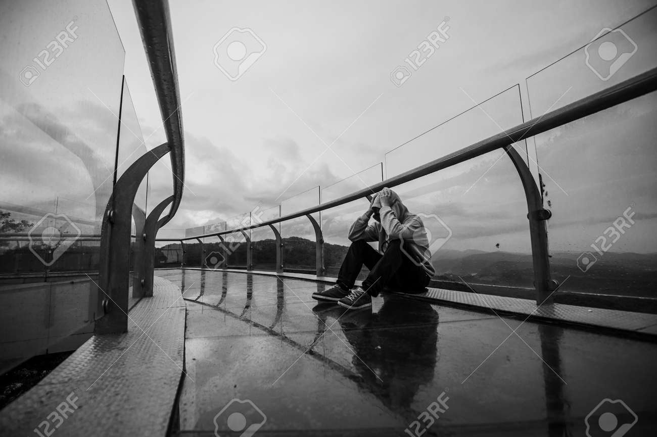 Tristeza Hombre Deprimido Sentado Solo En Las Montañas. Fotos, Retratos, Imágenes Y Fotografía De Archivo Libres De Derecho. Image 57787256.
